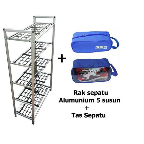 Rak Sepatu Aluminium 5 Susun Free Tas Sepatu⚓️⚓️⚓️Dimensi : (P)57 x (L)26 x (T)105 cmBerat produk : 1.8 kgBerat ongkos kirim : 2 kg.free tas sepatu : 1buah------------------------------------------------------------------------------------------Tas sepatu Sport shoes organizer. Tas berukuran (34x11x14)cm. Tas Sepatu ini beda dengan tas sepatu pada umumnya, dengan sisi tas yang berbahan transparan memudahkan anda melihat bagian dalam dari tas sepatu ini.Bisa digunakan untuk berbagai keperluan penyimpanan seperti sepatu running, sepatu futsal, sepatu sekolah, sandal, dll.Saat bepergian ke luar kota ataupun ke tempat gym/fitness , tas kecil ini menyimpan sepatu anda agar tidak mengotori koper atau tas olahraga anda.Pengiriman sesuai ketersediaan stok yang ada.⚓️⚓️⚓️ Baca Catatan Wajib Dibaca Sebelum Transaksi Cek Stock sebelum Order Produk yang telah dibeli tidak dapat dikembalikan TIDAK MENERIMA RETUR & KOMPLAIN DALAM BENTUK APAPUN Rak Sepatu Aluminium 5 Susun Free Tas S
