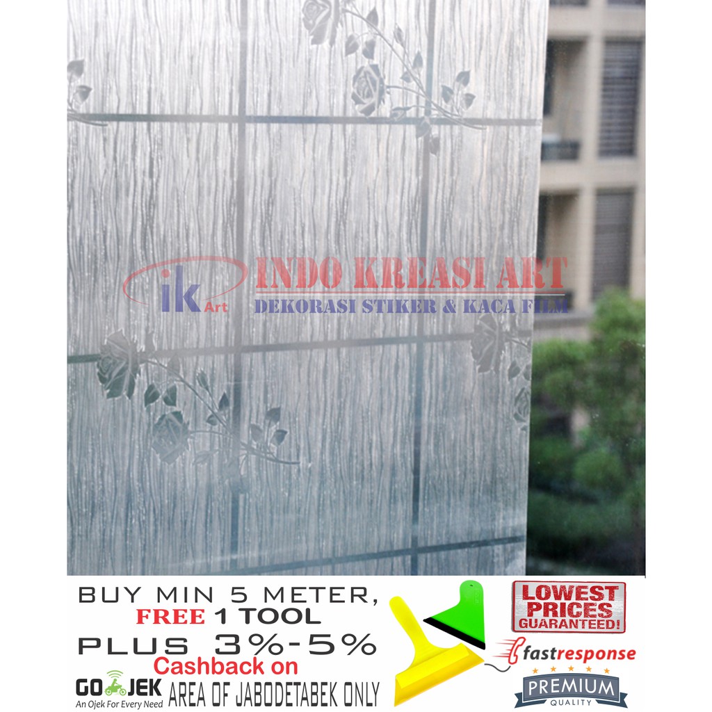 Stiker Kaca Motif L-122 CMSANGAT COCOK UNTUK PARTISI KACA RUMAH / KANTOR KARENA TIDAK AKAN MENGURANGI CAHAYA YANG MASUK & PASTINYA PRIVASI & LEBIH TEDUH.MOHON BACA SAMPAI SELESAI SEBELUM ORDER INDO KREASI ART DISTRIBUTOR KACA FILM DAN STIKER KACAPROMO : - ORDER 5 METER ( 10 PCS ) FREE SCRAPER ATAU WIPERINFO STOCK : Selalu Ready ( Silakan langsung order )PACKING : Menggunakan Selongsong /Carton Tebal /Pralon.PROSSES : FAST RESPONS /KALAU URGENT SILAKAN GUNAKAN GRAB/GOSENDSTIKER KACA MOTIF, HIGH QUALITY PRODUKLebar Bahan 120 cm panjang 1 roll 48 meter,Harga Rp. 25.500/ Ukuran L 120 Cm x 50 CmBeli 1 Buah Dapat 120 cm x 50 cmBeli 2 Buah Dapat 120 cm x 100 cmBeli 3 Buah Dapat 120 cm x 150 cmBeli 4 Buah Dapat 120 cm x 200 cmBeli 5 Buah Dapat 120 cm x 250 cmBeli 6 Buah Dapat 120 cm x 300 cm/3 meter Beli 10 Buah Dapat 120 cm x 500 cm/ 5 Meter ( FREE RAKEL / WIPER )Beli 15 Buah Dapat 120 cm x 750 cm /7,5 meter dan seterusnya...BONUS TIDAK BERLAKU UNTUK KELIPATANNOTE : MOTIF INI MEMANJANG/TINGGI KE 48 METERN BUKAN KE 120 CMMELAYANI JASA PEMASANGAN : (JABODETABEK MINIMUM SAMPAI 10 METER )KAMI MENAWARKAN HARGA KHUSUS UNTUK PEMESANAN MATERIAL DAN JUGA PEMASANGAN DALAM KAPASITAS BESAR, JADI TUNGGU APALAGI HUBUNGI KAMI SECEPATNYA.Alat-alat yang perlu disiapkan untuk proses pemasangan1. Siapkan Air + Shampoo ,Komposisi 1/2 Liter air cukup 1/2 Sacset shampoo.2. Kain basah (Kanebo ) , Cutter dengan mata cutter baru , Gunting ,Scraper/Wipper dan meter