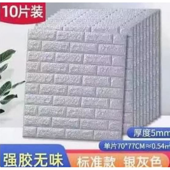 Wallpaper foam 3D untuk dekorasi dinding dengan motif bata bertekstur dan timbul seperti bata asli Bahan foam dengan tekstur bata ( BRICK )Warna:PUTIHMateri: POEUkuran: 70 x 77 cm1Tekstur 3D yang nyata dan jelas (apabila produksi tidak baik maka efek 3d dari produk tidak akan kelihatan)2Anda dapat membersihkan noda kotor dengan menggunakan kain basah3Sudah mempunyai perekat sendiri, sehingga sangat mudah untuk dipasang sendiri4Bahan kedap suara5Menggunakan bahan anti air (sangat mudah untuk dibersihkan)6Tersedia dengan ketebalan 6mm cukup tebal sehingga dapat menahan benturan (ketebalan dapat mempengaruhi efek 3d)7produk dibuat dengan menggunakan bahan alami yang organik dan tidak berbahaya untuk anak-anak anda di rumah8Sangat tahan lama, dapat bertahan sampai 6 tahun6 Warna wallpaper matte sehingga terlihat lebih nyata (kebanyakan produk yang beredar berwarna mengkilat)CARA PEMASANGAN DENGAN 3 LANGKAH YANG MUDAH:1. Ukur dinding yang akan di tempel, potong sticker sesuai ukuran2. Bersihkan area yang ingin ditempelkan dengan lap basah3. Lepaskan sticker dari kertas perekat, lalu tempel perlahan lahan sambil di