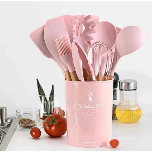 Spatula set silikon Peralatan masak anti lengket.Food grade.Tahan dr suhu -30 derajat sampai 230 derajat celsius.1 set isi 11 pc..Bisa untuk memasak, menggoreng digenangan minyak pun tdk meleleh..Aman dan tidak beracu