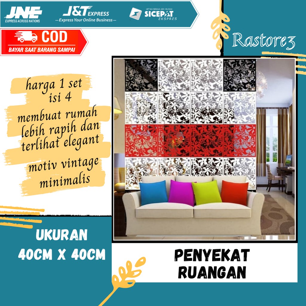isi 4pcs 1warnaDekorasi penyekat ruang vintagebosan dengan tampilan rumah tanpa dekorasi/hiasan?percantik ruangan rumahmu dengan dekorasi penyekat ruang 3D vintage, rumahmu akan jauh lebih terlihat cantik .bahan plastik, lentur dan tebal.sudah termasuk kelengkapan RING ( 16 biji ) warna gold