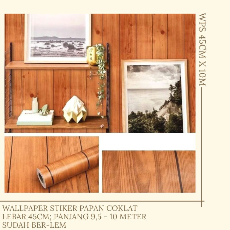 Wallpaper siap tempelUkuran 1 rol = lebar 45cm, panjang 10m1 rol bisa untuk media dengan luas 4m persegiKODE: PAPAN COKLATă…¤Spesifikasi:- Sudah ada perekat, tidak perlu pakai lem tambahan- Bahan vinyl, tidak mudah sobek- Waterproof, sangat disarankan utk dinding yang lembab tidak akan berjamur- Bisa pasang sendiri, tanpa bantuan tenaga ahli/tukang! PERHATIKAN SEBELUM MEMBELI !*Jangan lupa diukur terlebih dahulu ukuran tinggi & lebar dinding yang akan dipasang wallpaper, akan kami bantu menghitungkan kebutuhannya berapa rol*Boleh minta realpict, agar tidak mengecewakan nantinya (kalau ternyata barang diluar ekspektasi pembeli)*Tanya-tanya melalui chat sangat disarankan ya, kami welcome kok :)Selamat berbelanja & menghias ruangan ya! Jangan lupa share hasilnya & tag ke kami..#wallpaperdinding #wallpapermurah #dekorasirumah #homedecor #hiasandinding #wallpapersemarang #wallpaperonline #wallpaperkeren #wallpaperrol #wallpapermurah #wallpapersticker #wallpaperanak #wallpaperhellokitty #wallpaperruangtamu #wallpaperkamartidur #wallpaperkama