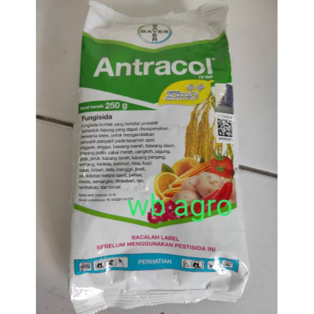 Antracol 70wp adalah fungisida kontak yang bersifat protektif berbentuk tepung yang dapat disuspensikan berwarna krem, untuk mengendalikan penyakit-penyakit pada tanaman apel, anggrek, anggur, bawang merah, bawang daun, bawang putih, cabai merah, cengkeh, jagung, jeruk, kacang tanah, kacang panjang, kentang, kedelai, ketimun, kina, kopi, kubis, lada, mangga, padi, pembibitan kelapa sawit, petsai, rosela, semangka, strawberi, teh, tembakau dan t