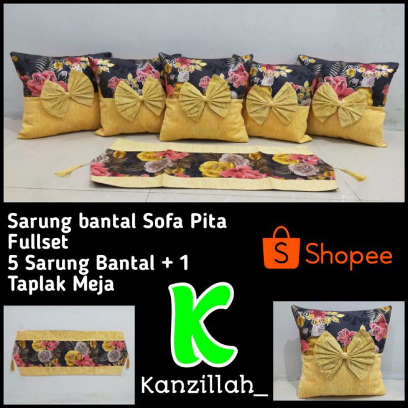 Name: Sarung Bantal Sofa Pita 40x40 Sofa Kusyen Seset 5 Sarung Bantal+1 Taplak Meja